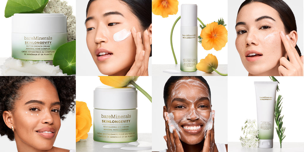 Each SKINLONGEVITY® formula features a bareMinerals exclusive mineral herb complex and carefully selected ingredients that help strengthen and protect the skin barrier. Some examples include: